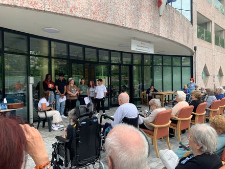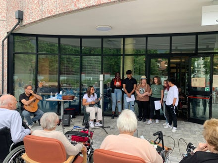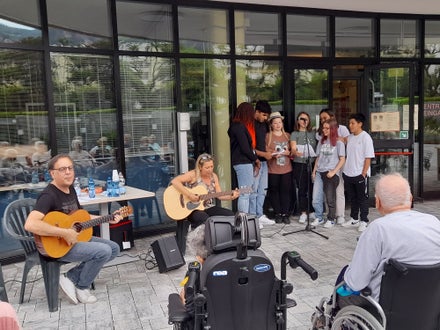 L'iniziativa ha visto il coinvolgimento della classe II Sociosanitaria e di alcuni studenti della classe IV Sociosanitaria. Abbiamo trascorso un' ora di musica insieme agli ospiti della RSA proponendo brani in lingua italiana, tedesca e inglese e cantato insieme a loro.