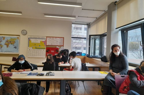 Il secondo incontro si è svolto in presenza presso la scuola "Hannah Arendt". Gli alunni della scuola "E. Lévinas" si sono recati presso la scuola gemella e quì hanno avuto la possibilità di conoscere dal vivo i loro nuovi compagni. Nel corso dell'incontro, coppie di ragazzi provenienti dalle due scuole hanno presentato in entrambe le lingue i lavori messi a punto che spiegano l'importanza del bilinguismo nello sviluppo personale e sociale.